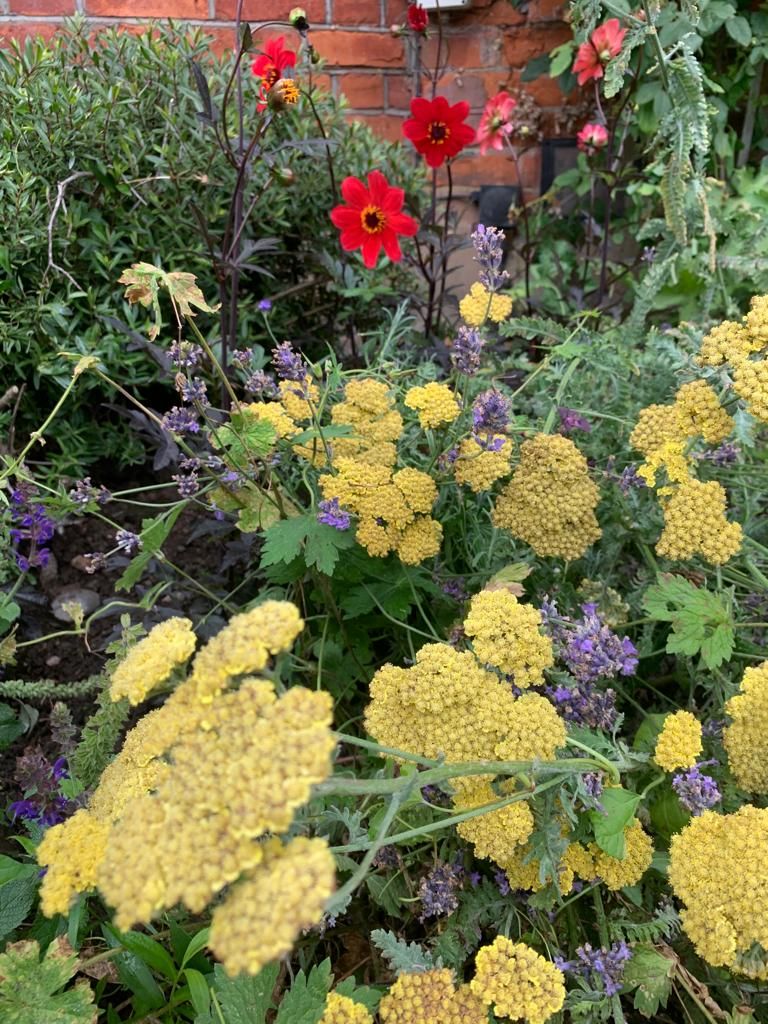 This herbaceous border in Muswell Hill had some large weeds which we pulled out. That gave us the opportunity to add some summer colour. In the back ground is Dahlia ‘Morning Sunshine’, yellowing flower with a corolla of light pink. The dark leaves give an added dimension. In the foreground is Leucanthemum x superbum. This cultivar has a yellow tinge to the flower and is an excellent summer filler, particularly for clay soul areas. #londongardens #gardenmaintenance #gardenflowers